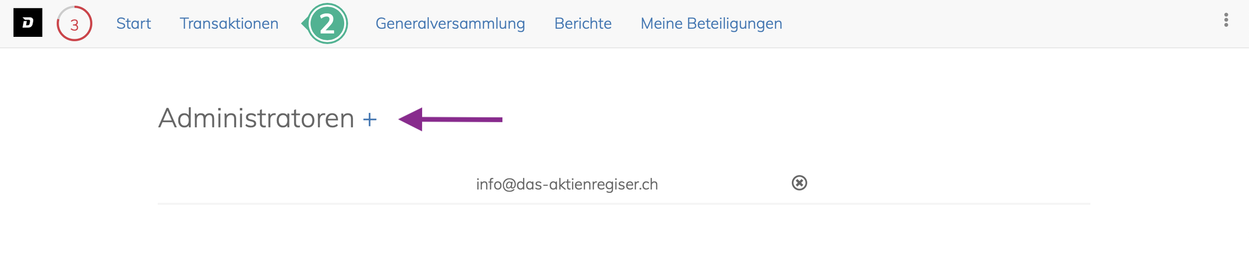 Sollte der Nutzer mehrere Aktienbücher verwalten sollen, fragen Sie uns bitte nach den Paketen für Treuhänder.