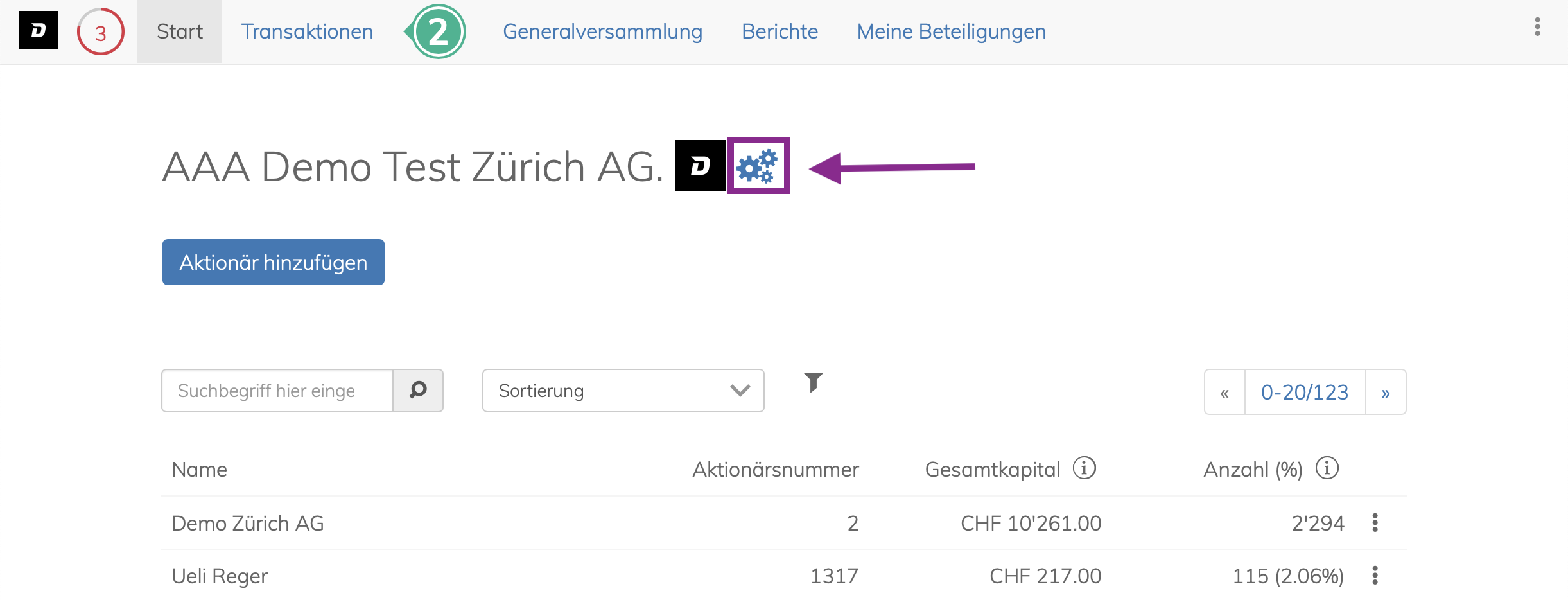 - Aktie A: 50 CHF Nennwert, 1 Stimmen, Wert in der Einstellung: 1